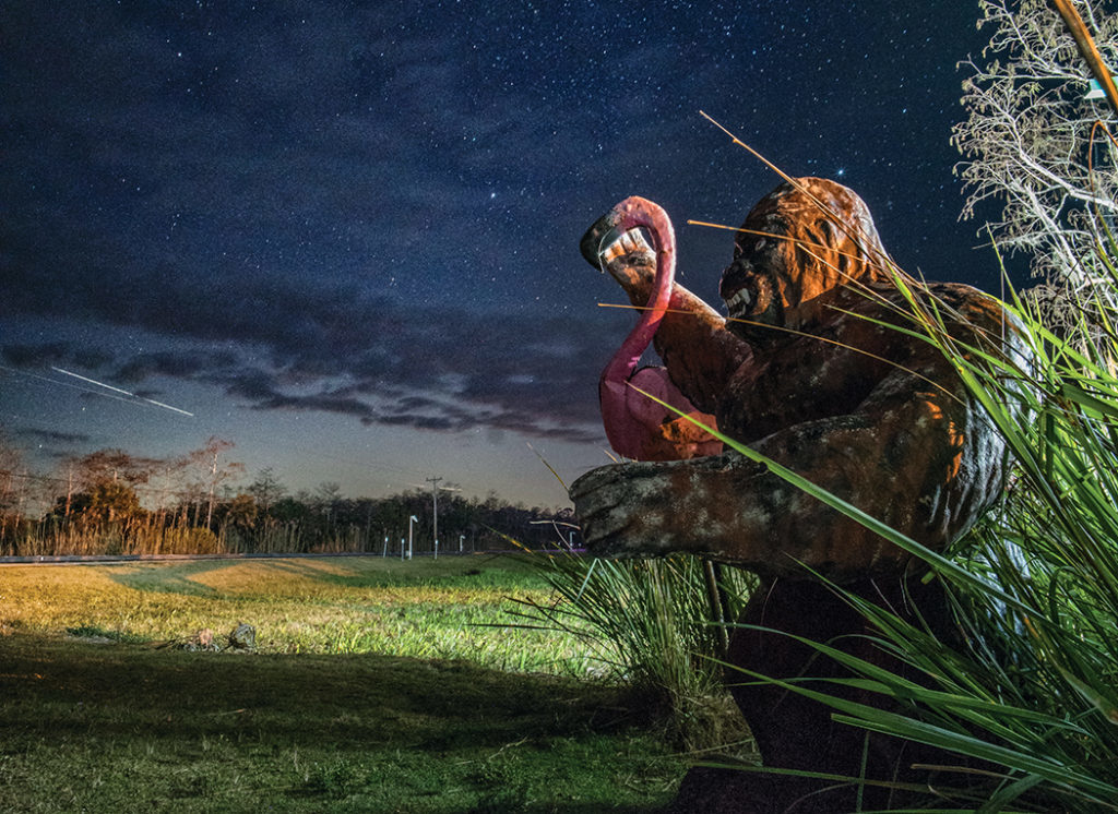 The skunk ape, also known as the swamp cabbage man, swamp ape, stink ape, swampsquatch, and myakka skunk ape, is a humanoid creature said to inhabit the U.S. states of Florida, North Carolina, and Arkansas, although reports from Florida are most common. It is named for its appearance and for the unpleasant odor that is said to accompany it.