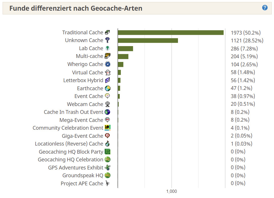Diese Challenge darf loggen, wer 13 der 20 verschiedenen Geocacharten - also 13 von 20 Icons, gefunden hat. Tag und Ort des Fundes sind dabei unerheblich. Labcaches dürfen leider nicht gewertet werden. Fügt bitte Eurem Log einen entsprechenden Nachweis bei.