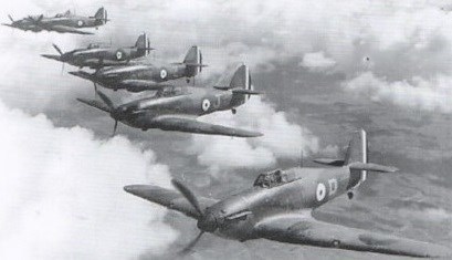 Une formation de Hawker Hurricanes du Squadron 1 au-dessus de la France