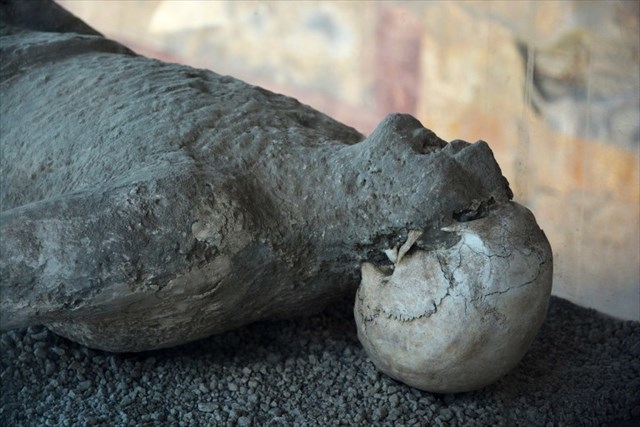 Obyvatelé Pompejí žili v přesvědčení, že Vesuv je vyhaslý a znepokojivým signálům nevěnovali pozornost, pravděpodobně je nespojovali s aktivitou Vesuvu. Byli zvyklí na drobné otřesy země a výrony plynů z Vesuvu a ani zemětřesení roku 62 n. l. je nevarovalo. Na začátku října roku 79 n. l. vyschly všechny studny ve městě, ale varování stále nebylo dostatečně silné. Katastrofa nastala s velkou pravděpodobností 24. října 79 n. l. (nebo i o něco později; podle dřívějších názorů pak 24. srpna), kdy došlo ke dva dny trvající erupci. První fází erupce byl vlastní výbuch (asi ve 1E hodin) následovaný deštěm pemzy (lapilli) trvajícím asi 18 hodin, který ještě dovolil většině obyvatel uniknout. Tato domněnka vyplývá z okolnosti, že na místě bylo dosud nalezeno jen asi 1150 těl a poměrně málo cenností; většina uprchlíků je pravděpodobně odnesla s sebou. Naopak u mnoha ostatků nešťastných opozdilců se vyskytly klenoty, mince a stříbrné předměty. Někdy v noci nebo začátkem následujícího dne se objevily pyroklastické proudy, které úplně nebo částečně zničily vše, co jim stálo v cestě, zahubily zbývající obyvatelstvo a změnily krajinu včetně pobřeží. Pompeje samotné byly pyroklastickými proudy přímo zasaženy několikrát, již první způsobil okamžitou smrt i lidem ukrytým v budovách (výsledky studie publikované v roce 2010 ukázaly, že dokonce ve vzdálenosti 10 km od pyroklastického proudu horkého 250 °C byla díky větru teplota dostatečná záhubě lidí). K večeru druhého dne erupce skončila a zůstal jen slabý opar, kterým prosvítalo slunce. Prostor Pompejí zůstal pokryt dvanácti různými vrstvami tefry o celkové tloušťce kolem 6 metrů, ze kterých vyčnívaly zbytky vyšších budov. Následující erupce Vesuvu v letech 471–473 a 512 přidaly další vrstvy.