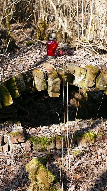 Na środku cmen- tarza znajduje się grobowiec z czer- wonej cegły w postaci ziemianki z łukowatym sklepie- niem. Jest on częściowo zasypany ziemią.