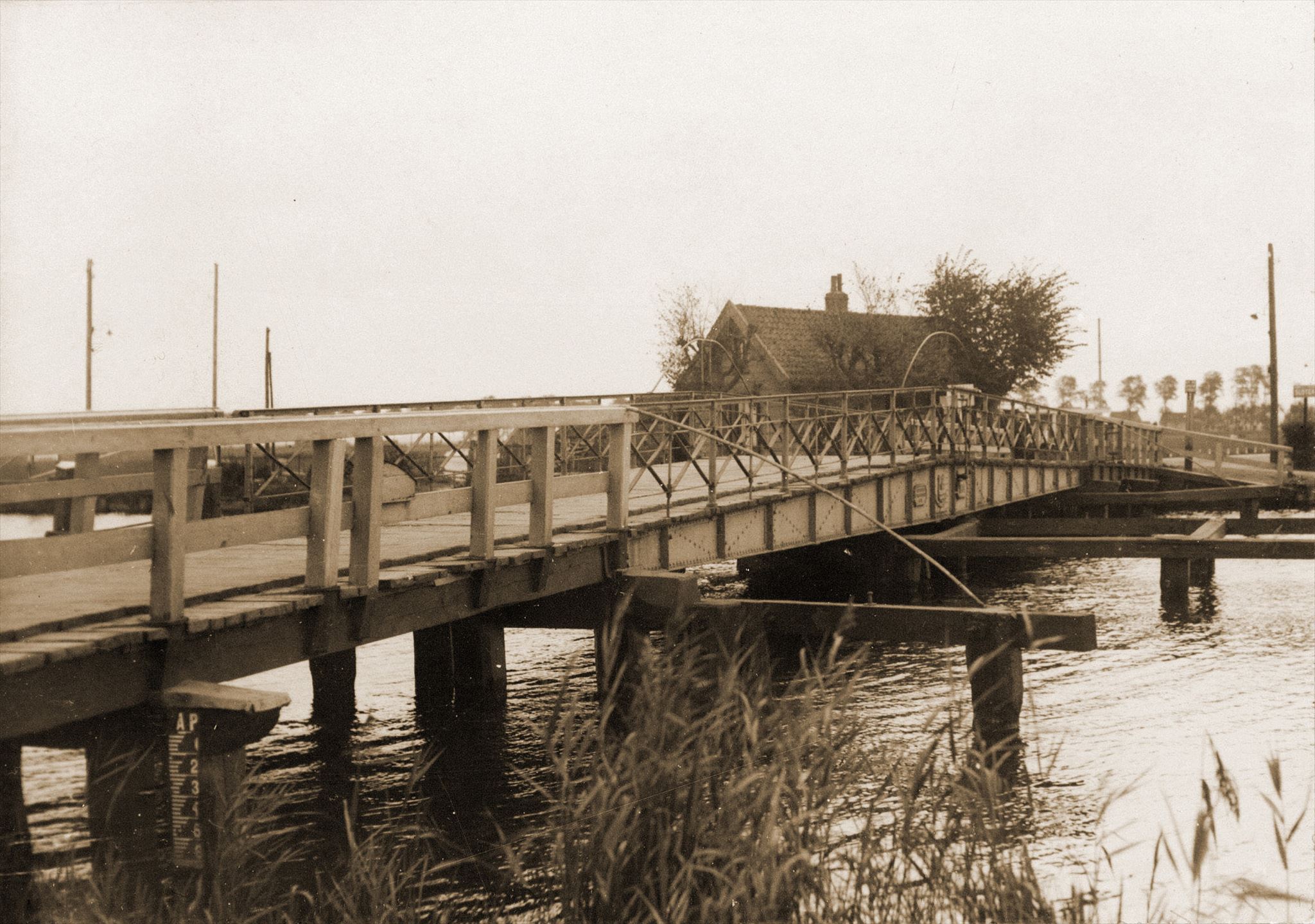 De brug bestond voor een groot deel uit hout met een draaibaar ijzeren middendeel.