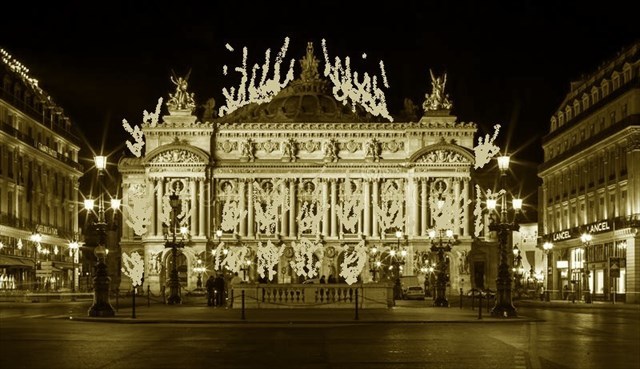 Požár opery Garnier v r. 1917, Cimrmanova partitura hoří jasným plamenem v prvním patře v páté místnosti zprava