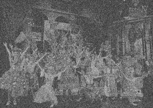 Záběr z operního filmu bratří Lumiérových, povšimněte si zejména vynikající masky představitele Fan Thomase nahoře uprostřed (z archivu ACOP)