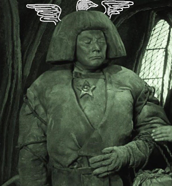 Na stínové daguerrotypii na pozadí listingu je jedna z 137 možných Mistrových podob s jeho oblíbeným doutníkem Unsmoked; i pod kloboukem je jasně patrný pahrbek geniality.