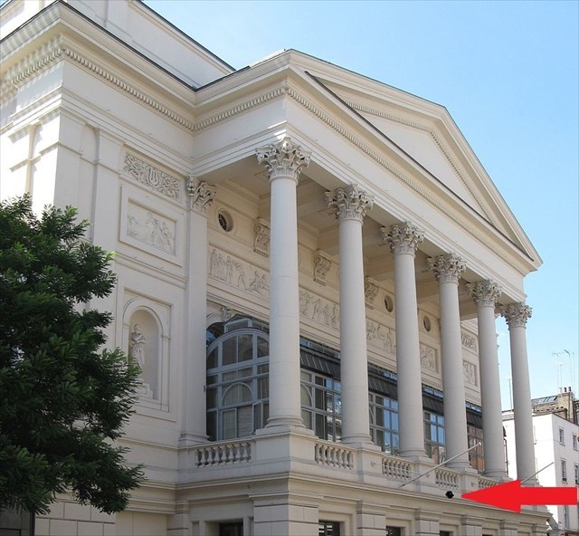 Cimrmanova busta na průčelí londýnské Královské opery