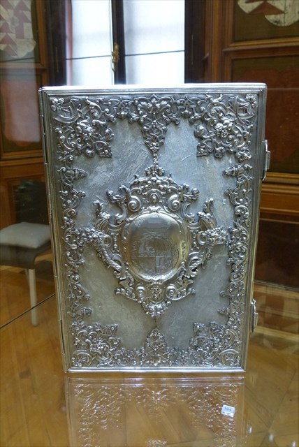Starobylý exemplář Ekonomikonu vsazený do stříbra vystavený na ministerstvu financí
