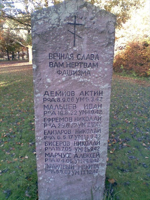 … Am bis heute als „Russenfriedhof“ bezeichneten Gelände nahe des Mittleren Pfauenteichs stehen zwei Grabstelen mit kyrillischen bzw. lateinischen Inschriften. Aus den Geburtsangaben ist ersichtlich, dass viele der Opfer junge Frauen um die 20 Jahre waren.