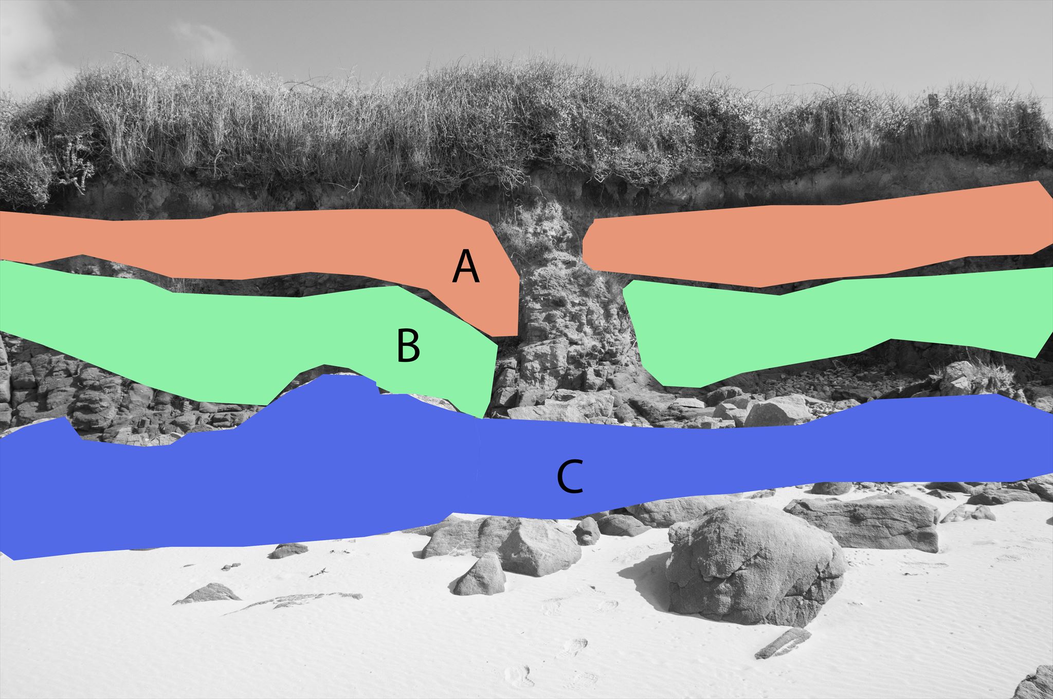 2- Aux coordonnées et avec la photo spoiler, quel est l'état du granite (sain, pourri ou bien arénisé) dans les zones A, B et C ?