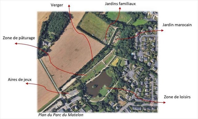 Situé à moins de 200 m du centre-bourg, le Parc du Matelon est composé d’éléments suivants :