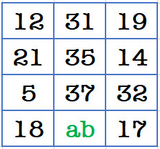 [PT] resolve o puzzle do "número em falta" acima e substitui a e b na fórmula abaixo. [EN] solve the "missing number" puzzle above and replace a and b on the formula below.