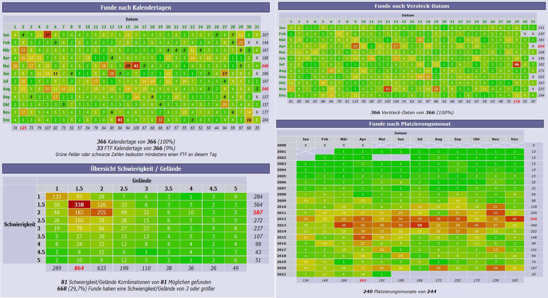 1x die 365 (366) Funde Matrix gefüllt mit deutschen Caches ( Funde nach Funddatum )