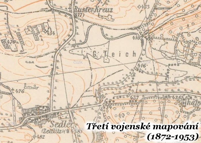 Současná vodní nádrž byla vybudována mezi léty 1978-1983 a byla primárně určena k zavlažování okolních zemědělských pozemků, zvláště pak pro zásobování závlahového systému v okolí Račetic. Nejednalo se však o první vodní dílo v této lokalitě. Dříve se zde totiž nacházel rybník Gros Tzedlitz Teich (Velký Sedlecký rybník), což víme z mapových záznamů prvního vojenského mapování. O století později je v mapě třetího vojenského mapování již označen jako Grosser Teich a byl pravděpodobně zanesen.