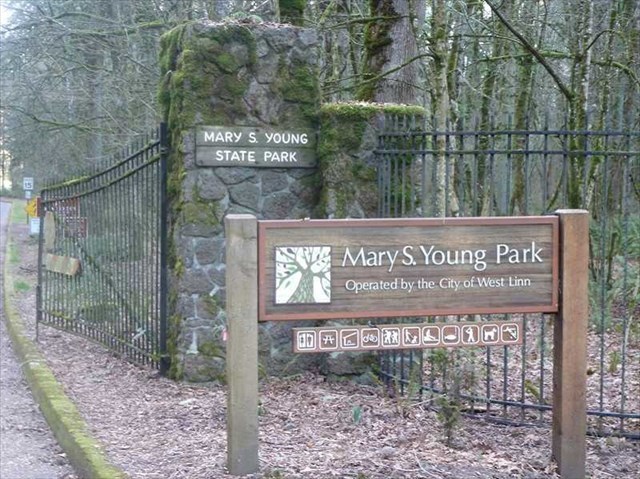Start your hunt for the cache container at the posted coordinates where you will find information about Mary S. Young who, with her husband, donated this property for a park to the State of Oregon in the 1960s. Head down the paved path to the east until you come to a Y in the trail. At the fork, Eric tells you to take a right and continue down the path toward the river. When you come to a T in the paved path, Logan instructs you to turn left. Follow the paved path until you come to another Y, this time with an unpaved trail off to the right. This path is Cedar Grove Trail. Take this trail until you approach a bit of a wider opening with a park bench on your left. As you pass the bench, Gloria, Jim, and Jimmy indicate that you should take the next left on the trail. Make that turn to the left and take just a few steps down the hill. Before the trail makes another left downhill toward a couple of switchbacks that head down to Riverside Loop Trail, leave the trail and walk forward toward the stump next to a tree. You will find the container in that stump. See spoiler photo, if necessary.