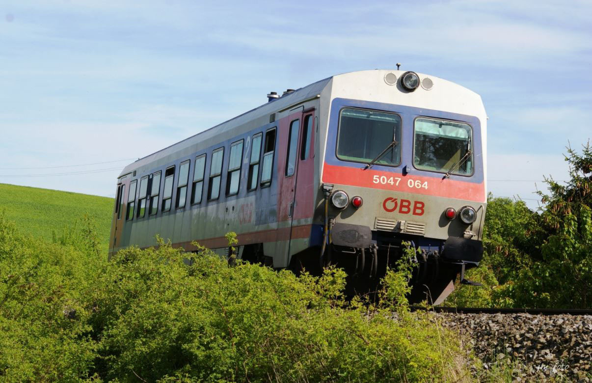 5047 ist ein Dieseltriebwagen der Österreichischen Bundesbahnen, der vor allem auf den Nebenbahnen wie hier auf der Leobersdorfer Bahn zum Einsatz kommt.