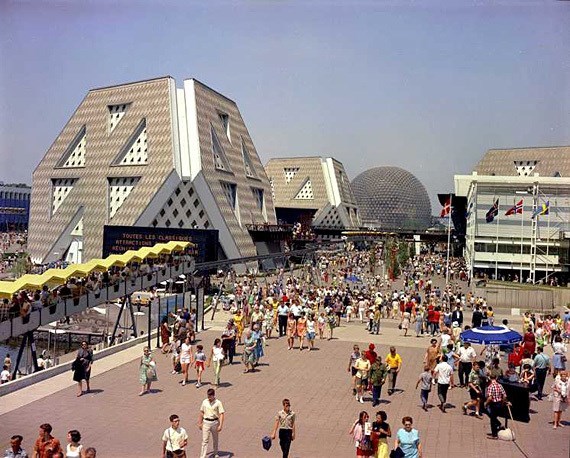 Ici, se trouvait il y a 54 ans le pavillon thémathique L'Homme interroge l'Univers. De l'autre côté du chemin, sur la rive du chenal LeMoyne, on retrouvait le pavillon de Scandinavie qui regroupait cinq pays: Danemark, Finlande, Islande, Norvège et Suède.