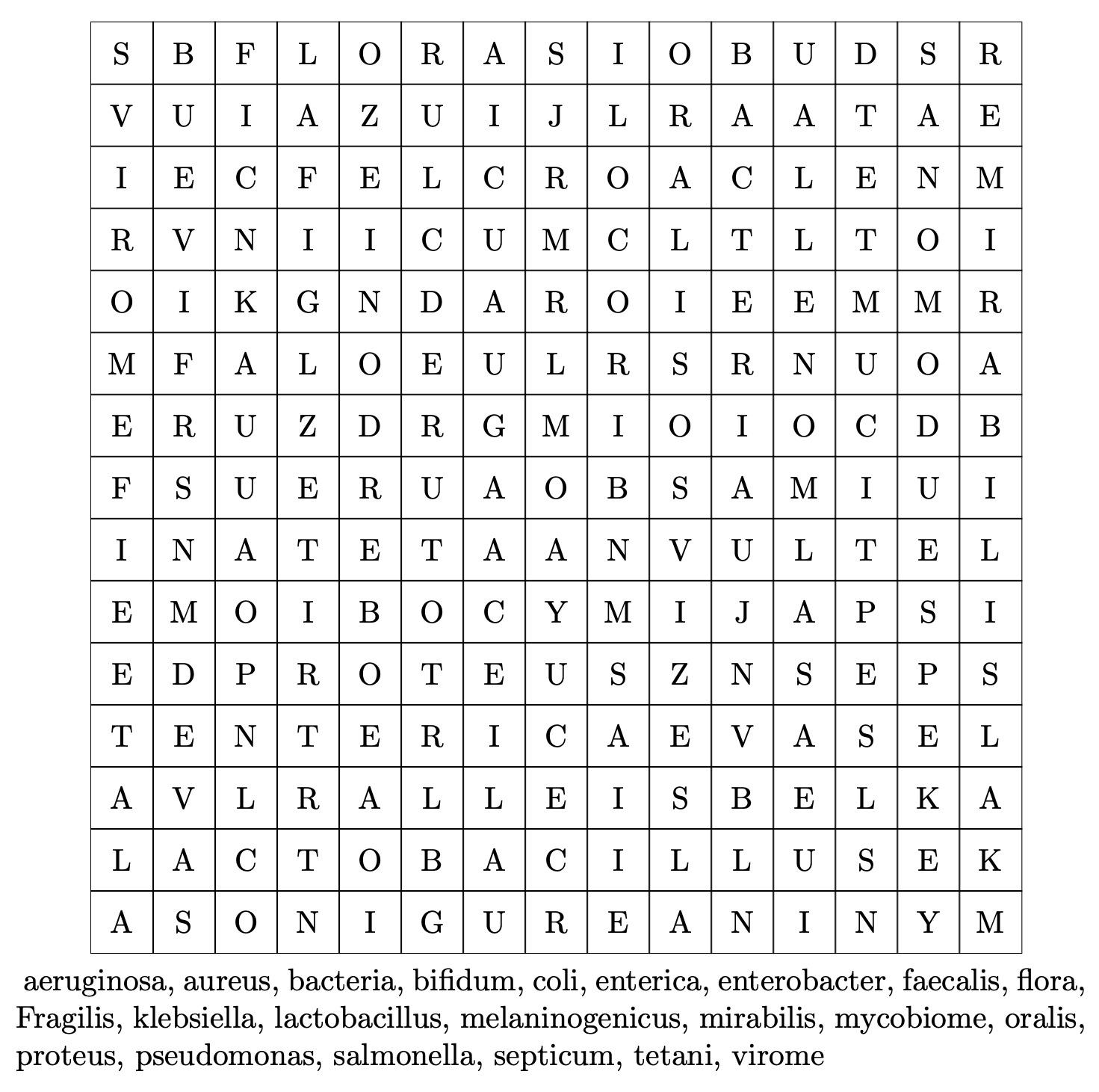 V priloženej osemsmerovke je zoznam baktérií, ktoré sa nachádzajú v tráciacej sústave. Ich vyškrtaním ostane 48 písmen, ktoré tvoria pravdivú vetu o trávení. Tie vložte do overovača (bez diakritiky) a získate súradnice.