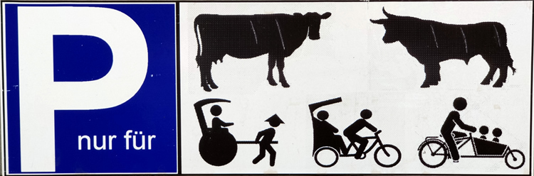 Na ja, wie dem auch sei; ... uns interessiert das obere Listingbild mit dem Hinweis, dass dort nur ganz bestimmte Gefährte vorrangig parken dürfen.
