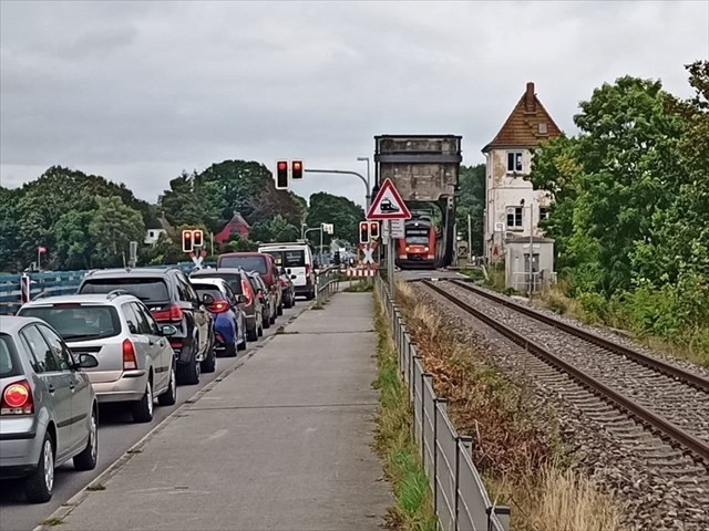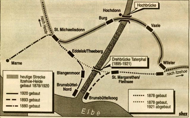 Die vorhandene Drehbrücke in Taterpfahl (bei Ostermoor) konnte wegen des bis in eine Tiefe von 15 m moorigen Untergrundes nicht wie geplant durch eine Hochbrücke ersetzt werden. Man ging mit dem Neubau so weit nach Osten, bis man auf guten Baugrund am Rande der Geest traf.