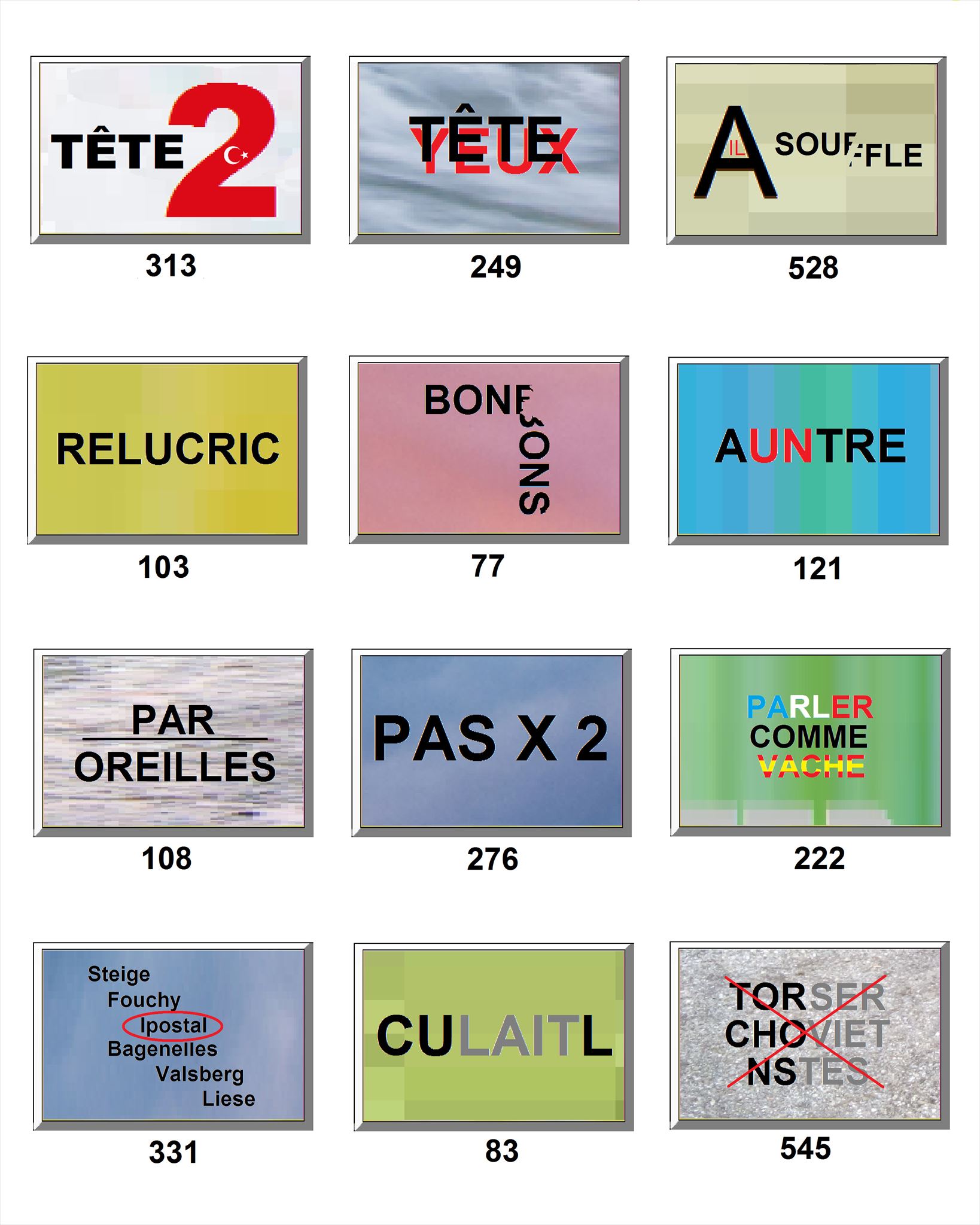 Cherche parmi le lot d'images suivant, les 3 dingbats qui correspondent aux 3 définitions retenues.