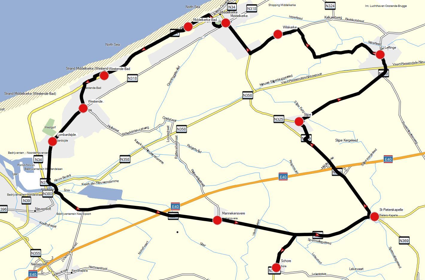 All R.K. churches throughout Middelkerke are visited. The entire tour is about 34 km long.
