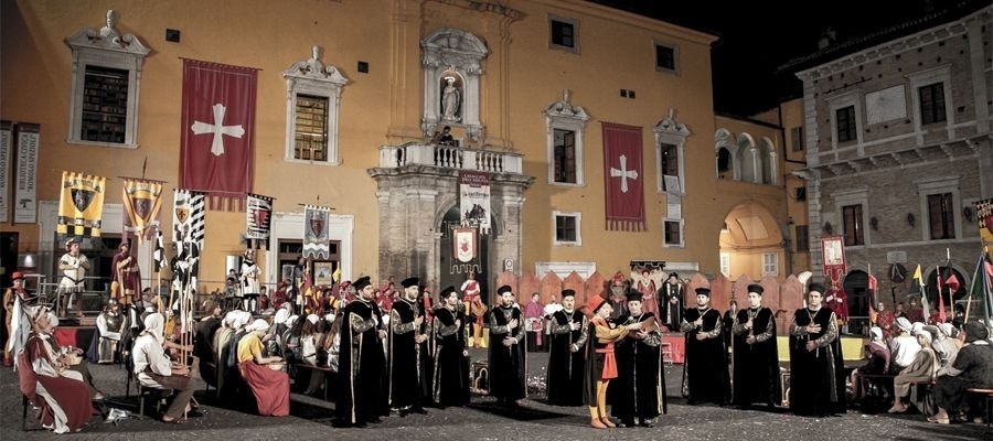 The “Cavalcata dell’Assunta” (Cavalcade of the Assumption) of Fermo is the oldest re-enactment in Italy and dates to 1182. Yesterday as today, the victory in the horse race awards the “Palio dell’Assunta” (Assumption Palio). In the days preceding the Palio, the rivalry between the 10 districts of Fermo is expressed both at the tables in the Hostarias and in the challenges of the historical games. A few days before the Palio on August 15th the “Tratta dei Bàrberi” takes place, i.e., the draw with which the horses are paired with the districts.