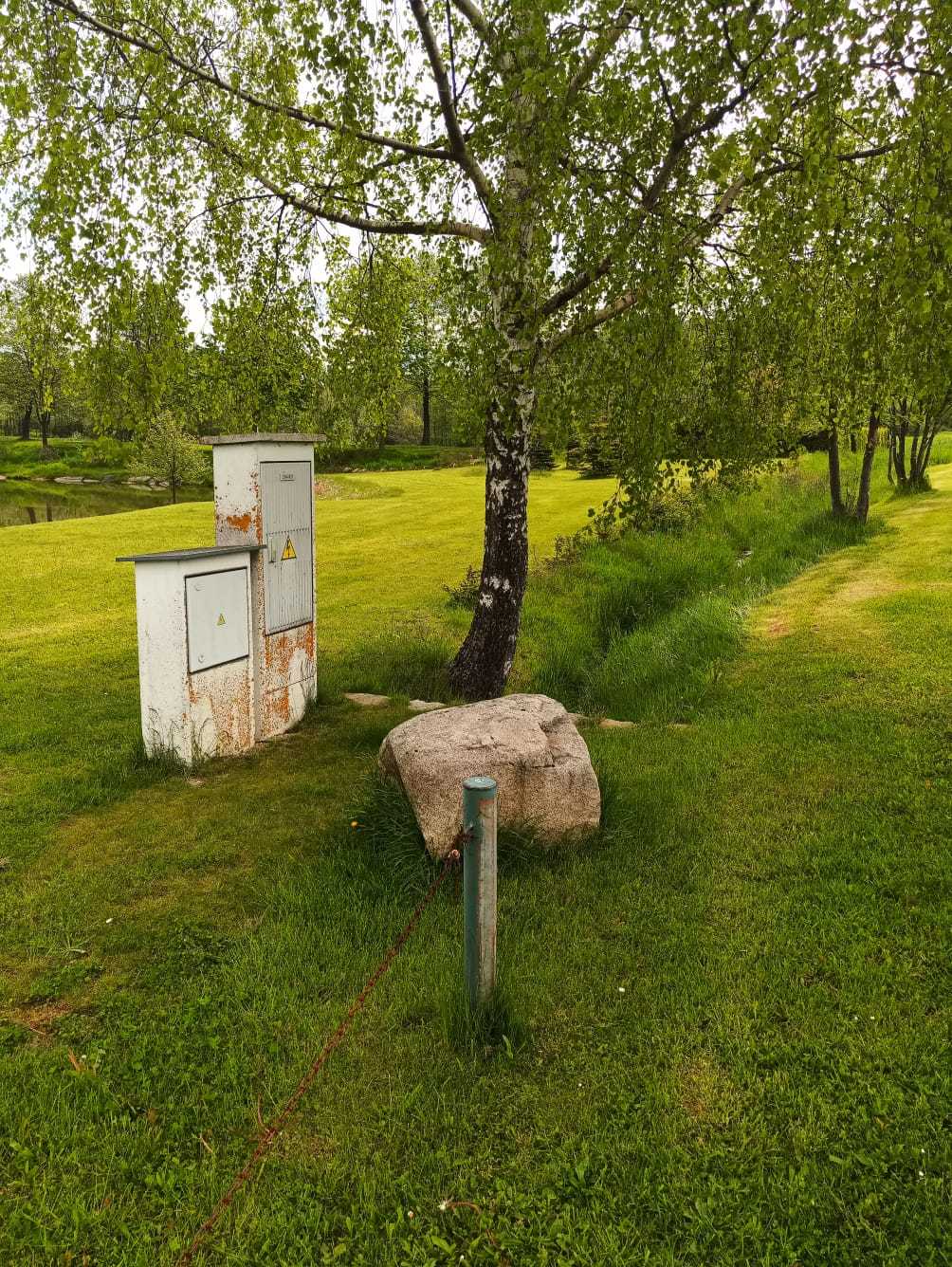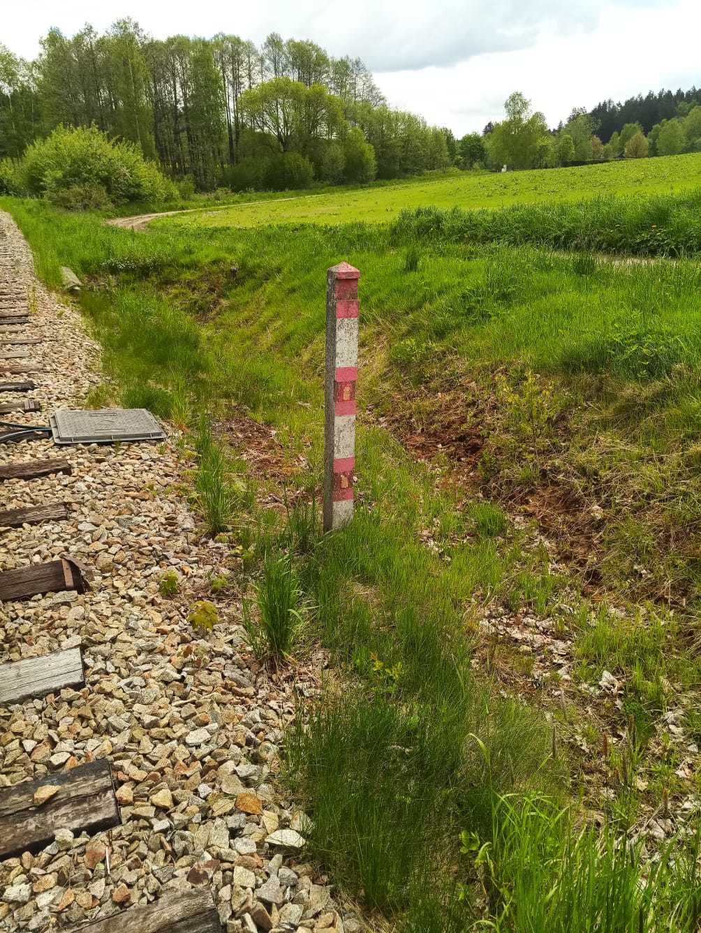 Od poslední fotografie pokračujte dále po cestě k rozcestí, kde naleznete velký kámen. Krabičku pak hledejte ve vzdálenosti přibližně 0,1 míle v azimutu 116°.