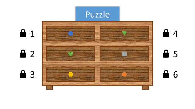 Du wachst auf. Du weißt nur noch, dass du mit dem Zug oder mit deinem kleinen roten Auto nach Bad Hersfeld gefahren bist. Aber wo bist du hier? Es ist kalt und dunkel und die Luft riecht muffig – so, als ob hier schon länger niemand mehr gelüftet hätte. Außerdem ist es stockdunkel. Du tastest um dich. Ein unebener Lehmboden und … da scheint eine Wand zu sein. Aha! Du greifst in deine Tasche. Ah, das Smartphone (auf dem praktischerweise auch noch die Wherigo-App installiert ist) ist noch da. Perfekt! Du schaltest die Taschenlampe des Handys ein und leuchtest um dich: Rundherum Mauern aus grob behauenen Steinen. An einigen sind seltsame Kratzspuren zu erkennen. Wo zur Hölle …?! Du fluchst in allen möglichen Sprachen. Du befindest dich in einem runden Raum von etwa fünf Metern Durchmesser. Die Decke des Raumes kannst du im Licht der Handy-Lampe nicht sehen, sie verschwindet im Dunkel. An einer Stelle ragt eine steinerne Wand in den ansonsten kreisrunden Raum. An der Wand steht eine Kommode mit sechs Schubladen. Was hinter der Mauer ist, kannst du nicht sehen. Du schaust nach. Eine Tür! Freudig willst du sie öffnen, doch die dicken Eichenbohlen und die schweren, rostigen Eisenbeschläge bewegen sich nicht einmal. Jemand hat die Tür abgeschlossen! Du rufst um Hilfe, doch nur dein widerhallendes Echo antwortet dir. In dem Moment taucht eine Benachrichtigung auf deinem Smartphone auf: "Akkustand 15 %". Du gehst zur Kommode, die dein einziger Anhaltspunkt in diesem Raum ist, und findest auf der Kommode ein Puzzle. Die sechs Schubladen sind verschlossen.
