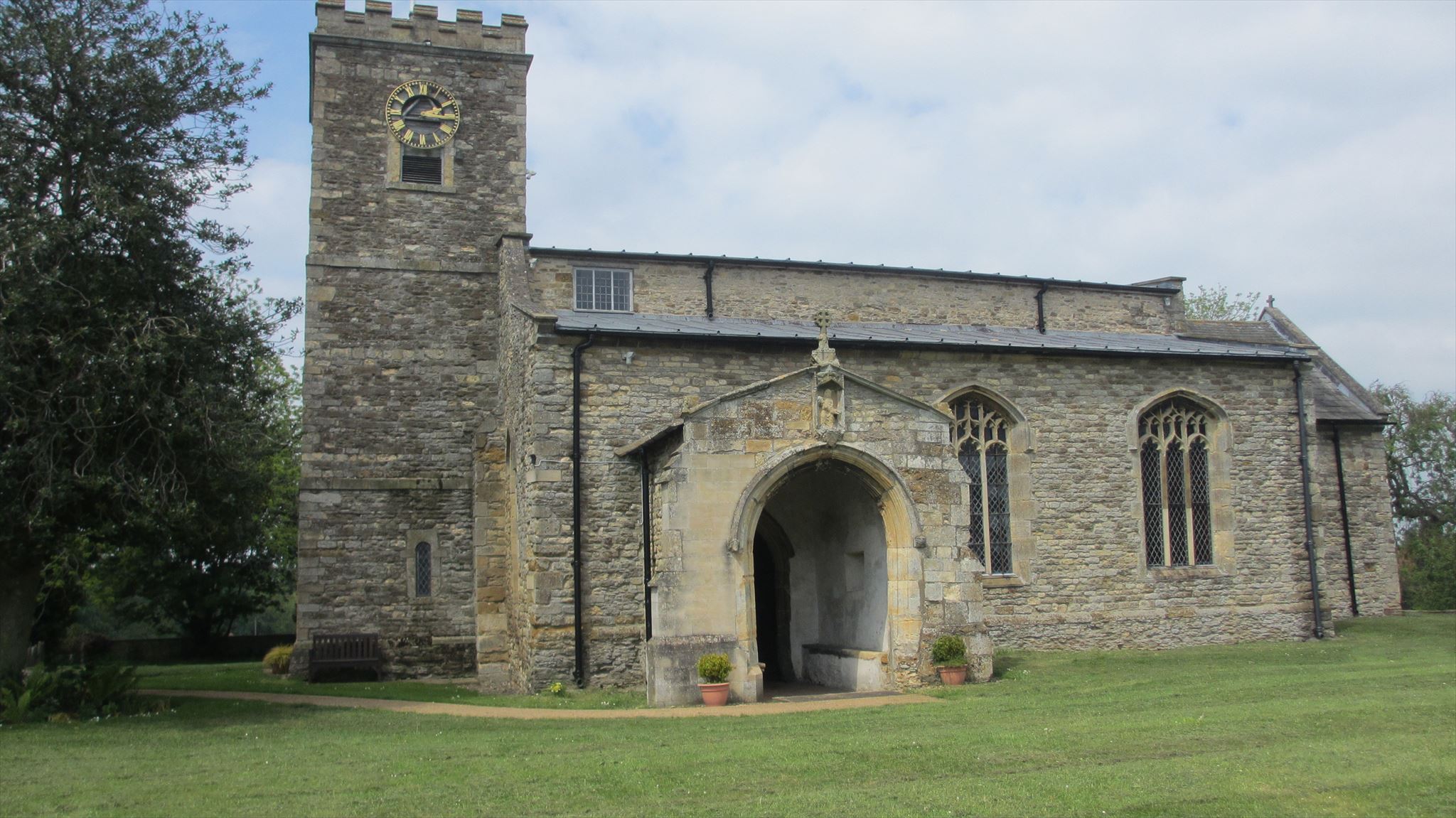 Under the organ loft lies an old 14th century stone effigy known as Molly Grimes. The ancient ritual of washing holy images on Good Friday was perpetuated in Glentham until 1832, using this effigy. A rent charge of seven shillings a year had been left on some land to pay seven virgins to perform this task, the water being carried from the well near Caenby Corner. When the land was sold in 1832 with no reservation on this rent charge, the custom fell into disuse. The 13th century tower was repaired in 1756 and again in 1989. The clock, made by TM Hartley of Shillingford, was installed in 1921 as a war memorial, and has to be wound every six days. On the east wall of the vestry is a small area of typical Norman stonework in the chevron pattern. And finally have a look in the west end of the churchyard, here stands two rare black walnut trees which were planted in 1930.