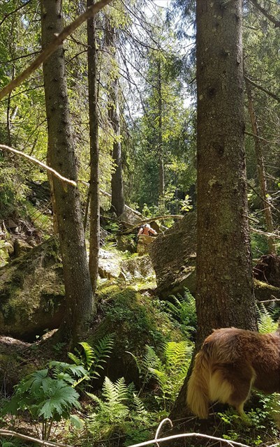 Delvis vanskelig fremkommelig på grunn av myr og trenedfall.