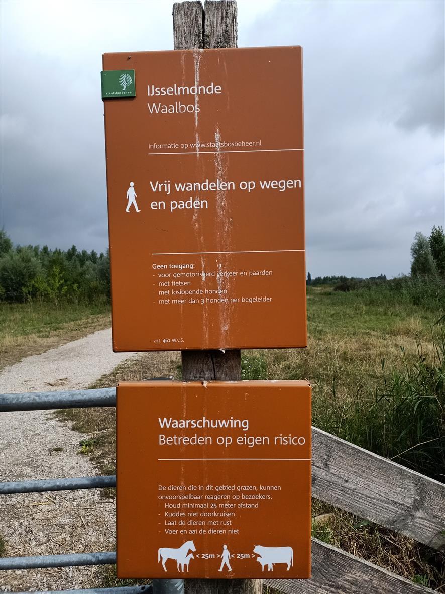 De wandeling gaat door een natuurgebied. Het gebied is alleen toegankelijk tussen zonsopgang en zonsondergang. Je loopt hier tussen de koeien, de schapen, diverse vogelsoorten, hazen en mogelijk nog een paar diersoorten. Let er goed op dat je niks achter laat in dit gebied, voor de veiligheid van de dieren! Het meenemen van een fiets aan de hand is niet toegestaan.