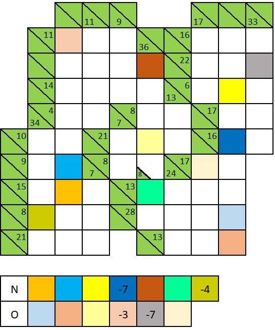 Om het iets lastiger te maken zijn op 4 plekken de som van de vakjes niet ingevuld. Deze zullen eveneens door de puzzelaars moeten worden gevonden.