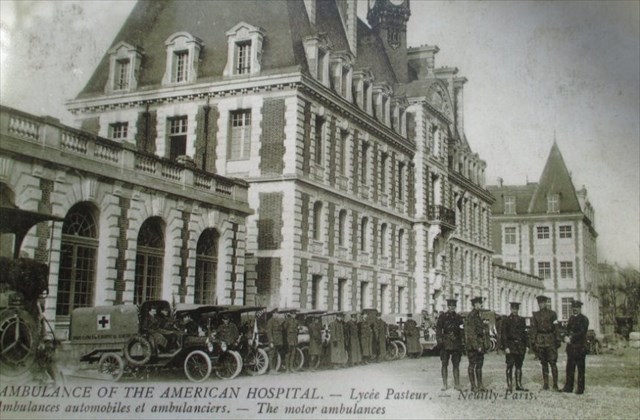 Entre août 1914 et avril 1917, l’Amérique apporte à la France une aide financière estimée à près d’un milliard de dollars actuels pour financer la transformation de l’hôpital Américain à Paris. La France met à disposition les locaux du lycée Pasteur à proximité pour créer la section des blessés de « L’ambulance de l’hôpital Américain de Paris »