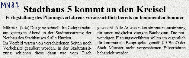 Oder hier: Das Stadthaus 5 soll ebenfalls am Ludgerikreisel erbaut werden, neben der Skulptur „Auge der Macht“ von Hermann Pröblinghues. Hierhin soll ausgerechnet das Amt des Stadtkämmerers ausgelagert werden. Verstehen Sie?