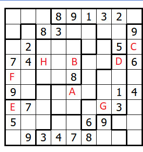Vítám vás u druhé kešky ze série Rébusy. U sudoku ještě chvilku zůstaneme, tentokrát ale budete mít za úkol vyluštit nepravidelné sudoku (angl. jigsaw sudoku, případně irregular sudoku) Nepravidelné sudoku se luští podobně jako klasické sudoku, jediný rozdíl je v tom, že místo pravidelných čtverců 3x3 zde máme tučně ohraničené nepravidelné oblasti. Pravidla pro luštění nepravidelného sudoku tedy zní: K předem vyplněným číslicím je třeba doplnit další číslice tak, aby platilo, že v každém řádku, v každém sloupci a v každé tučně ohraničené oblasti jsou použity vždy všechny číslice jedna až devět, každá právě jednou.