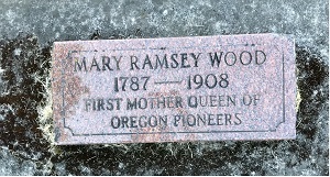 Waypoint F: Mary Ramsey Wood lived under the administration of every U.S. president from Washington to Taft. It is said she traveled to the Oregon Territory across the Oregon Trail at the age of 66, riding her horse Martha Washington Pioneer the entire journey. As a midwife she delivered at least one baby during the trip. When Mary Ramsey Wood was 120 years old, she was crowned “The Queen of Oregon”. She was reported to be the oldest living person in the United States when she died at age 120.