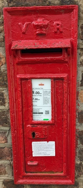 Another cache in a National Numbered Series of Letterbox Hybrid caches, placed to mark one of a diminishing number of post boxes placed in Queen Victoria’s reign and still in use for regular collections by Royal Mail.