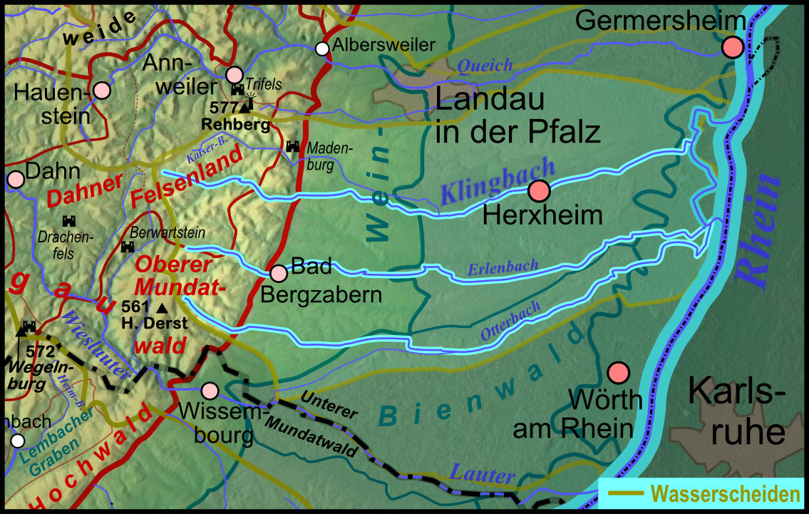 Dieser Tradi befindet sich nahe dem Klingbach. Dieser entspringt in der Nähe der Burg Lindelbrunn im Pfälzer Wald und fließt über 38 km bei Hördt in den Michelsbach und dann gleich in den Rhein.