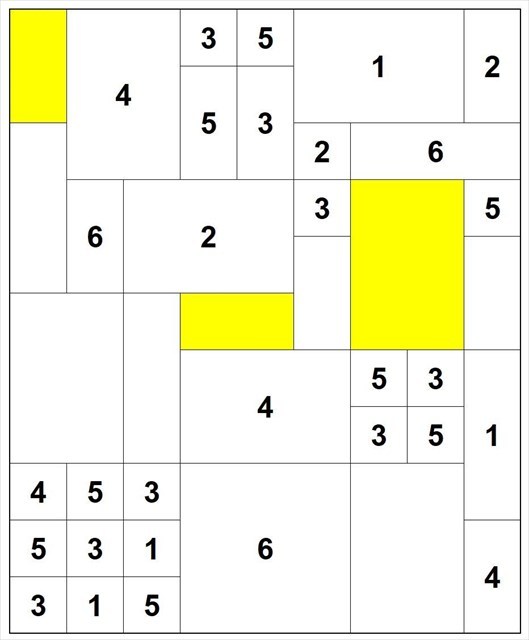 Dieser Cache besteht aus 7 Rätseln von identischem System. Um euch etwas in die Materie einzuführen, löst ihr zuerst das sehr einfache Rätsel "GELB", indem ihr in den leeren Kästchen die Zahlen von 1-6 so einfügt, dass jede Zahl in jeder Zeile und Spalte genau einmal vertreten ist.