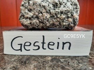 Schaut euch die kleine Gesteinssammlung genau an und beantwortet dann bitte vor dem Loggen die folgenden Fragen. Die Schilder enthalten nur eine Nummer und eine einfache Gesteinsbezeichnung. Die genauen Bezeichnungen findet ihr auf den großen Infotafeln. Für die Beantwortung der Aufgaben benötigt ihr nur das Listing, die kleinen Schilder am Stein mit den Nummern und eure Beobachtungsgabe.