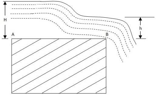 - The crest of the weir is very sharp such that the water will springs clear of the crest.