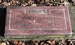 Waypoint E is about 4.5 feet tall and is about 6 feet south of the headstone for CALEB C. BENNETT.
