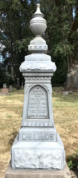 Waypoint C is a tall metal headstone for SAMUEL WILLIAMS. It has several different symbols.