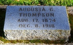 Waypoint D is about 2 feet tall, and is about 2 feet north of the headstone for AUGUSTA G. THOMPSON.