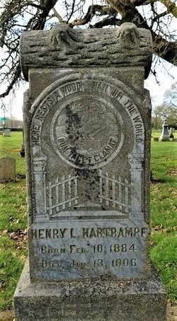 Waypoint F is Woodman of the World headstone for HENRY L HARTRAMPF.
