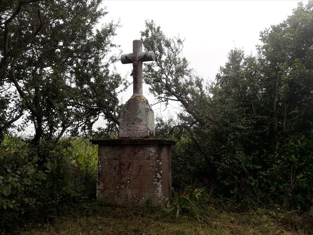 Cette croix, située sur le chemin du Bradenn, est monté sur un pied en granite. La croix est cylindrique en granite également, le Christ est en métal, et l'ensemble du calvaire est orienté vers le nord.