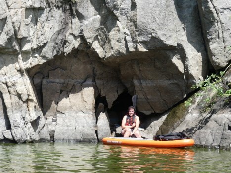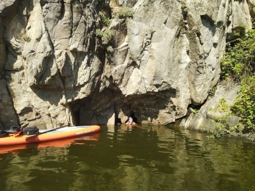 Ideální je použít paddleboard nebo jiné plavidlo. Dále budete potřebovat provaz na zajištění plavidla až budete logovat, protože ho musíte na chvilku opustit a podle aktuálního stavu hladiny do jeskyňky buď vplavat nebo vylézt po kamenech po svých. Ale nemělo by být nutné se potápět, určitě to dáte se suchou hlavou. Pokud přece jenom bude vody abnormálně moc a moc, že vstup bude pod vodou, doporučujeme nechat odlov keše na jindy.