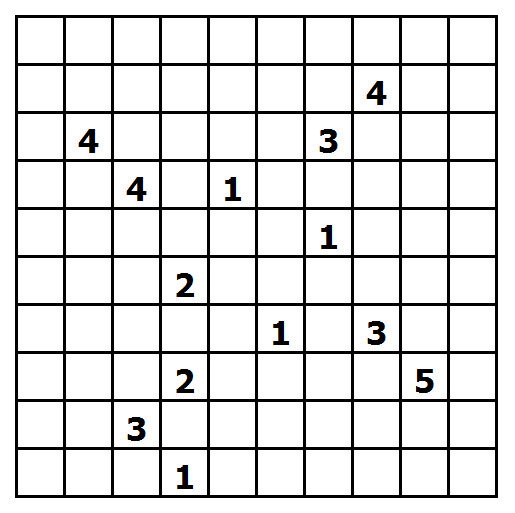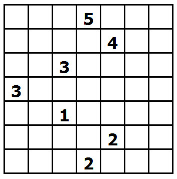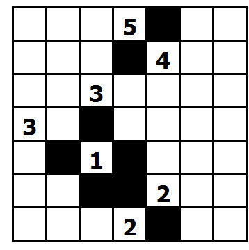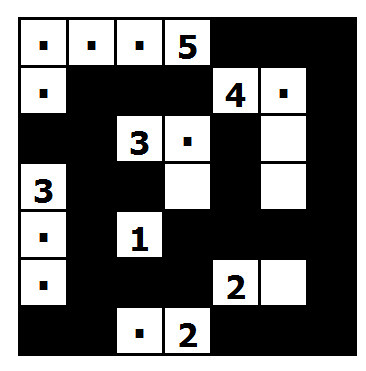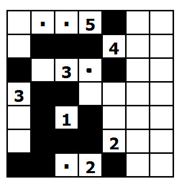 Pravidla jsou malinko složitější. Máte čtvercovou mřížku. Vaším úkolem bude zjistit, která políčka budou černá a která bílá. Představte si to tak, že bílá políčka budou ostrovy a černá políčka budou moře, které tyto ostrovy obklopuje. V mřížce máte několik čisel. Políčka s těmito čísly budou vždy bílá a budou patřit ostrovům, každé číslo vám říká, z kolika políček se daný ostrov skládá (včetně políčka s číslem). V každém ostrovu je právě jedno číslo, Každý ostrov tvoří celek a všechna políčka jednoho ostrovu se sebou musí sousedit alespoň jednou stranou (tj. nestačí jen rohem). Oproti tomu ostrovy mezi sebou se můžou navzájem dotýkat maximálně rohem, stranou ne.