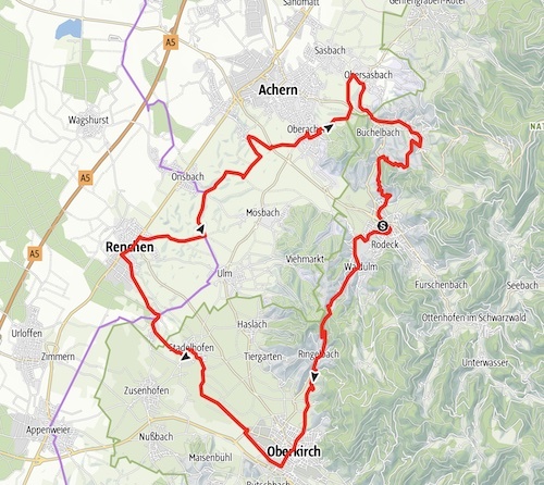 Die Rundtour führt durch zahlreiche Weindörfer der Ortenau, die für ihre herausragenden Weine in der ganzen Region bekannt sind. Die Strecke ist größtenteils asphaltiert, enthält aber auch geschotterte Passagen. Der GPS-Track der Tour kann zum Beispiel hier heruntergeladen werden: www.outdooractive.com