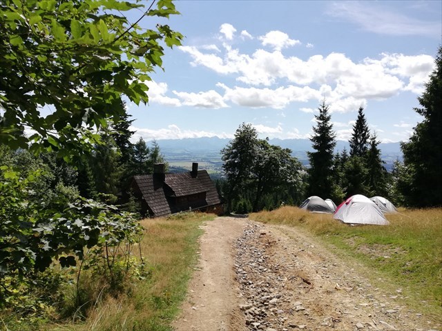 Idziemy czarnym szlakiem w stronę Klikuszowej. Przy kapliczce skręcamy w lewo w kierunku Koliby (szalak niebieski) i po 5 min jesteśmy na Polanie Łapsowa Niżna. Stąd również piekna panorama Tatr i Nowego Targu. Tu znajduje sie schronisko Koliba na Łapsowej. Mozliwość posiłku, a nawet noclegu. WC. Jest wydzielone pole namiotowe oraz miejsce na ognisko i stoły piknikowe. Schronisko niegdyś uczęszczane i tętniące życiem. Póżniej zapomniane niszczało, aż do 2017 roku kiedy to zostało reaktywowane przez nowych właścicieli. Obecnie wyremontowane cieszy się dobrą opinią wędrowców. Serwuje też dobre jedzenie, a kultowe juz racuchy stają się powolo wizytówką tego miejsca. Tak próbowaliśmy, są bardzo dobre. Na polanie znajdziecie też rzeżbę owcy turystki. Jednej z trzech w okolicy Nowego Targu.